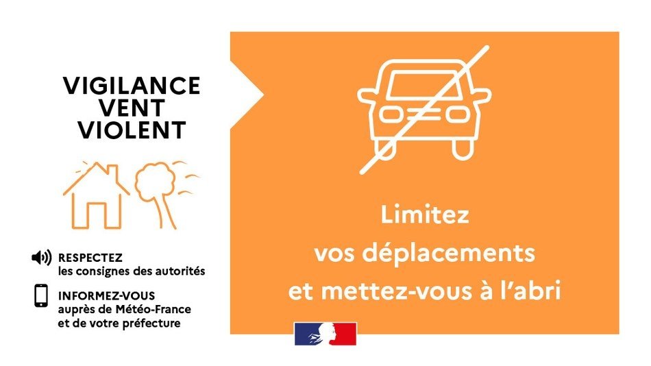 #VigilanceOrangeđ | Tempête benjamin : la Gironde est placée en vigilance ORANGE VENT à partir de jeudi 23 octobre 6h00 pour le phénomène de vents violents.