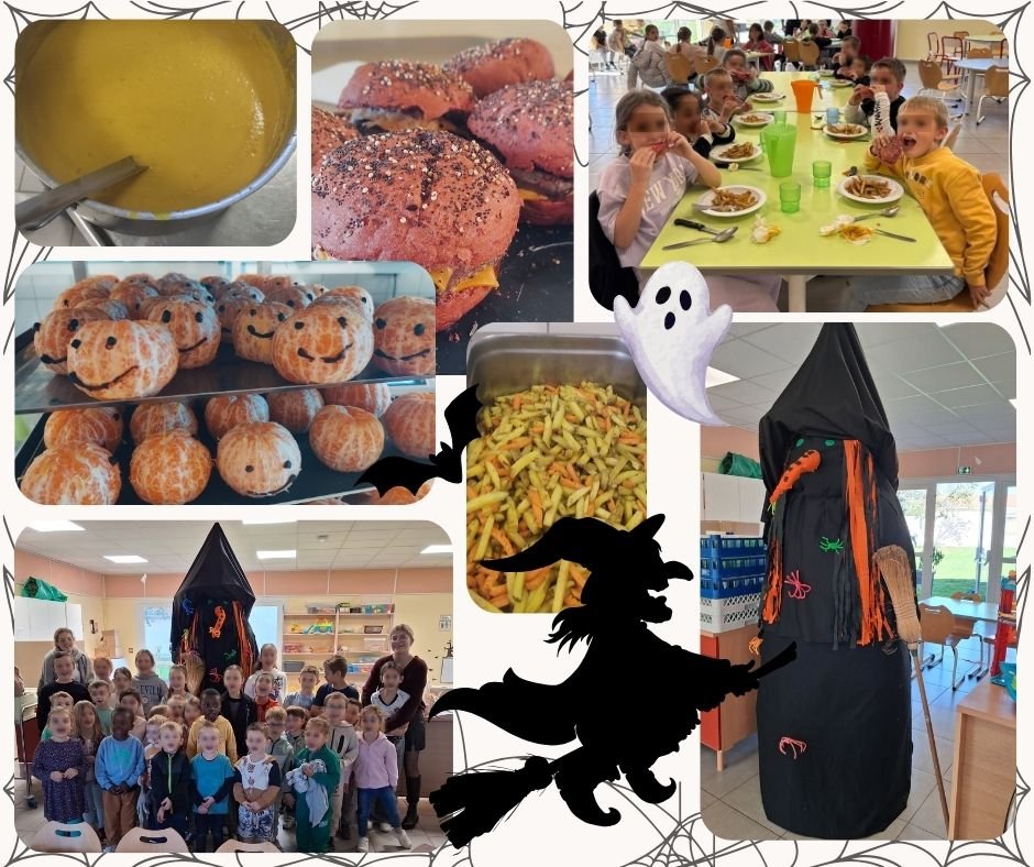 À cette occasion, les maîtresses et la cantinière ont uni leurs idées pour proposer un menu spécial “sorcière”, en lien avec le projet.