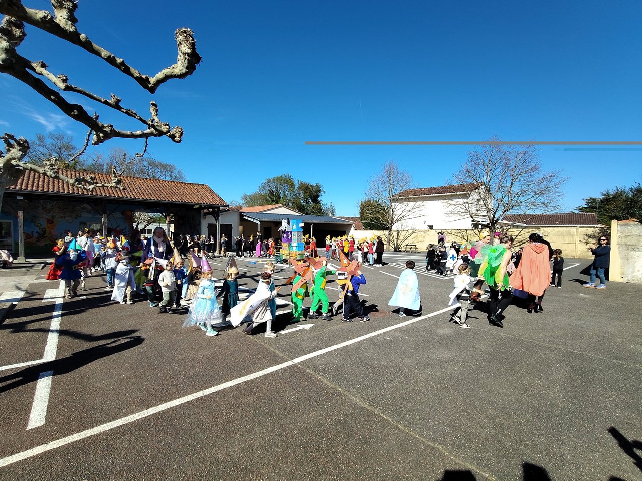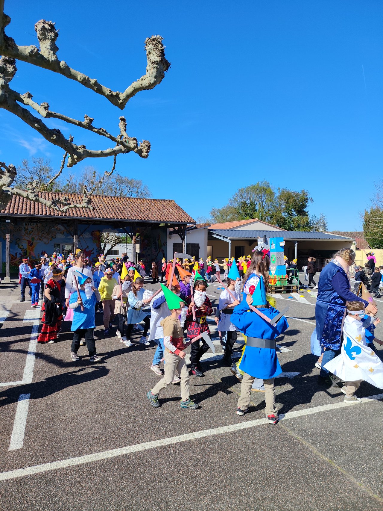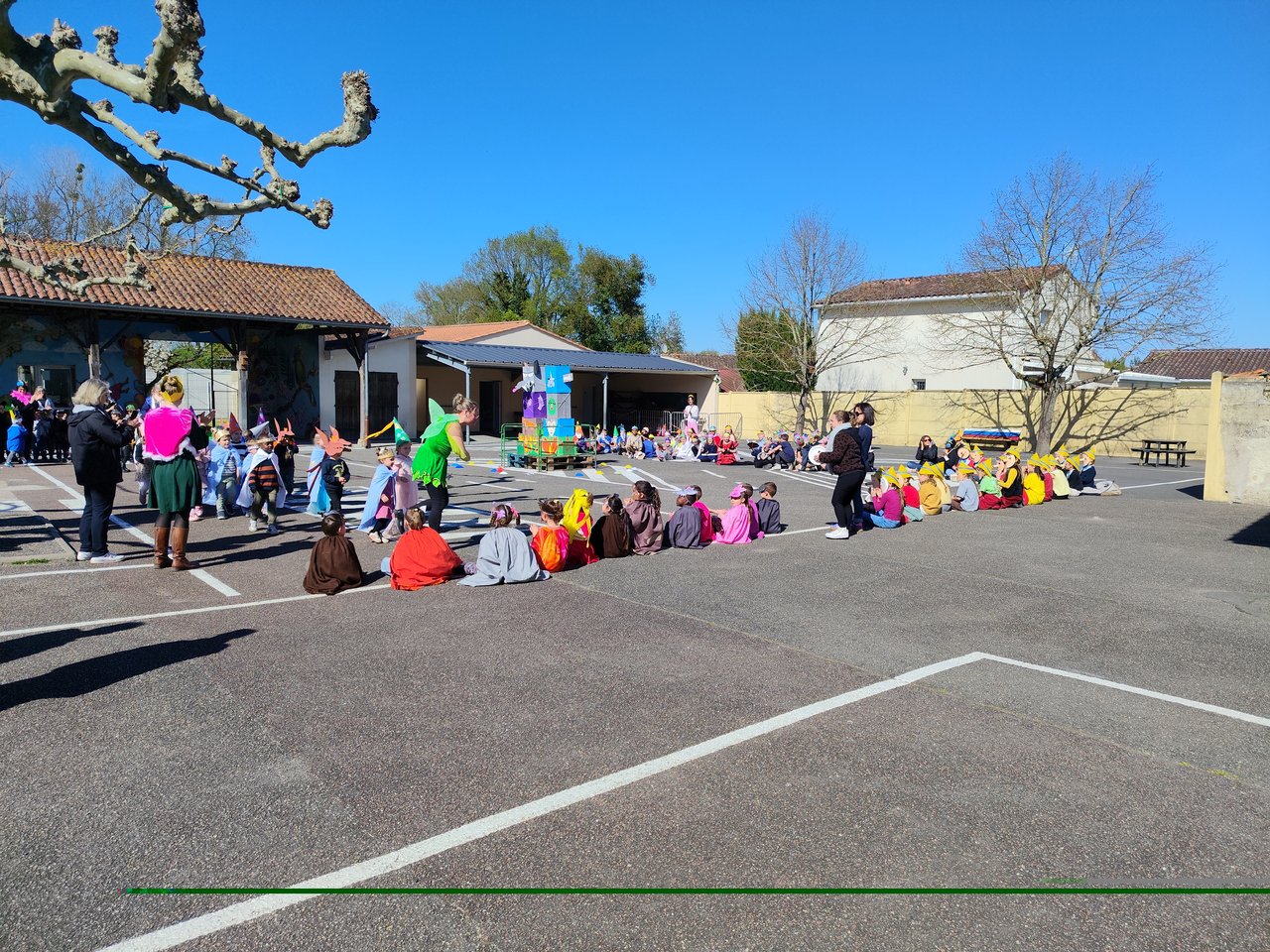 Chaque classe a défilé autour du totem, au rythme de musiques choisies pour accompagner leurs déguisements… entièrement réalisés par les élèves eux-mêmes 👏