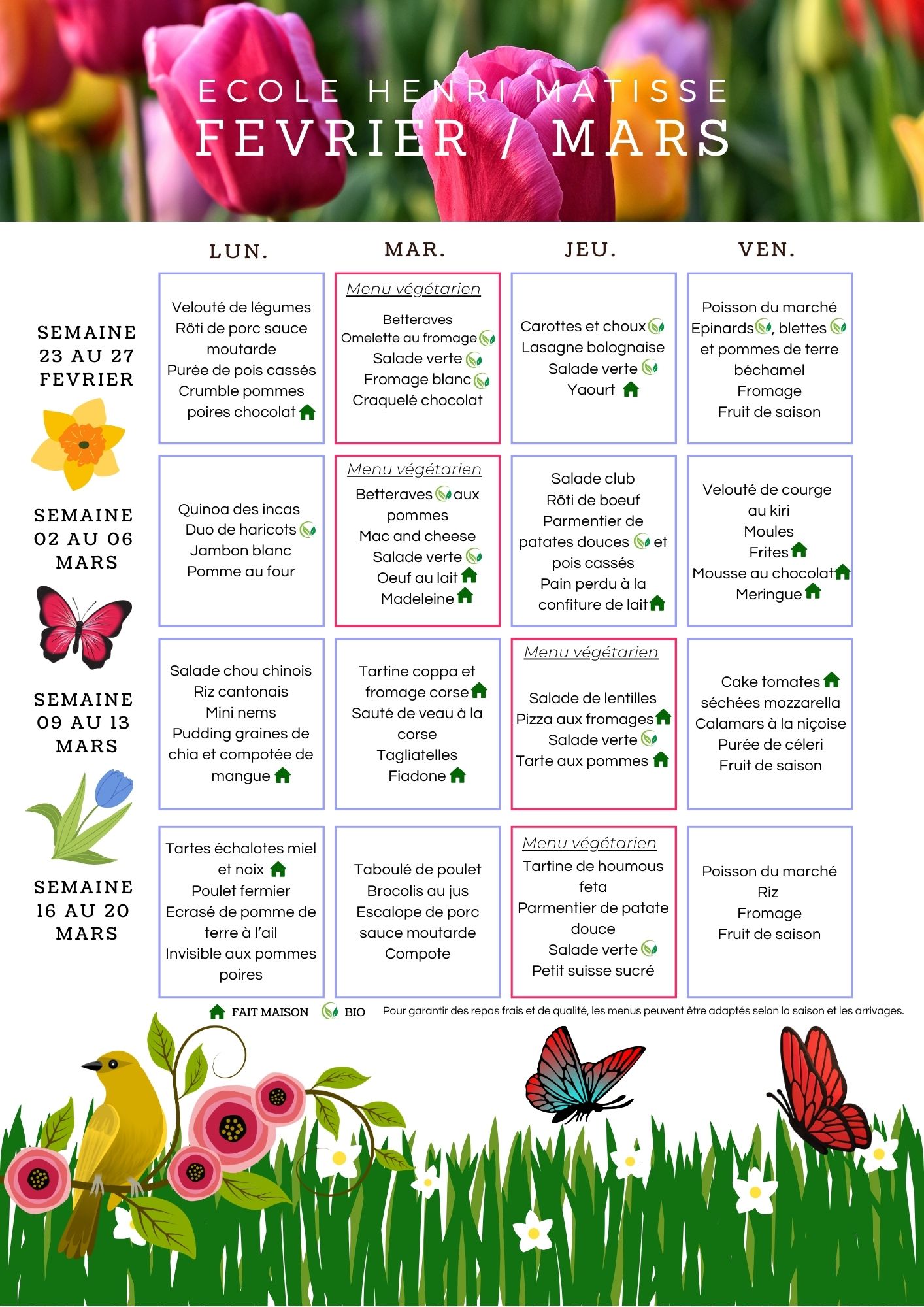 🍽 Menus du mois de FEVRIER/MARS 2026 🍽